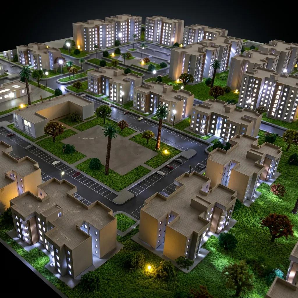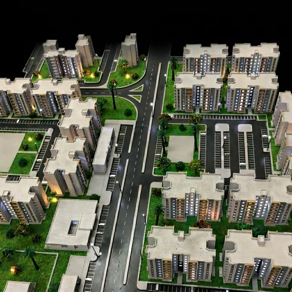 Bariqa residential buildings scale model in Libya was implemented by architects specializing in manufacturing mock-ups with more than twenty-five years of experience at City Scale for architectural scale models and maquettes. It was shipped to Libya Air Airport, which achieved great success when it arrived and was presented to visitors. It was manufactured within 35 days of 2022. The model has a scale of drawing: 1/50 scale and dimensions: 140 cm * 100 cm.