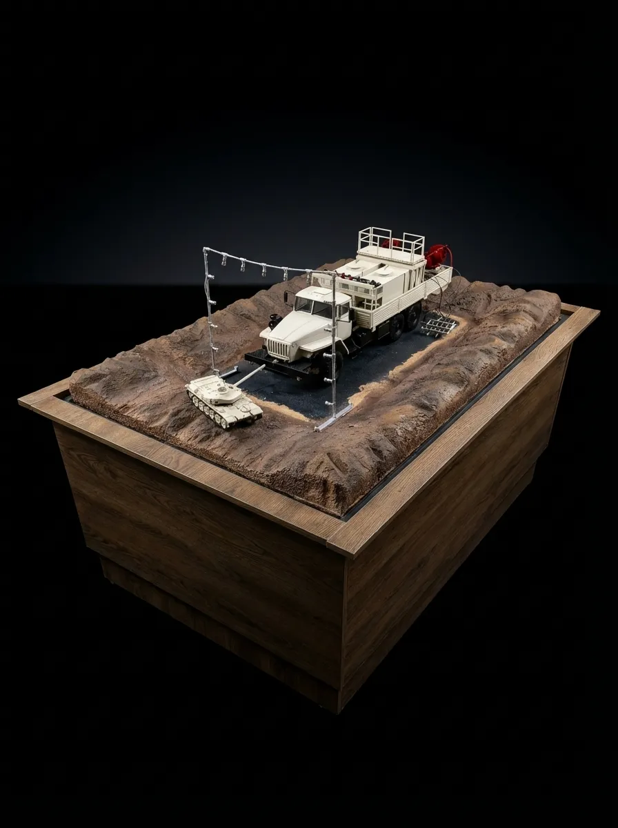 Rocket Launcher Vehicle scale model in Egypt for the 999 War Factory. The mock-up was implemented by architects specialized in the maquettes industry with more than twenty-five years of experience at City Scale for architectural scale models and maquettes, which achieved great success from the moment it arrived and was presented to visitors, it was manufactured in 2021, the model is on a 1/10 scale and dimensions of 150cm * 70cm * 40cm.